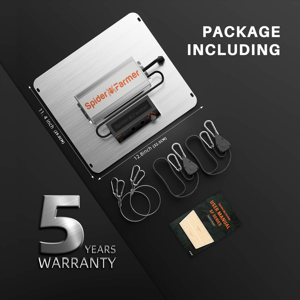 Tugev konstruktsioon: töötab ilma mürata. Spider Farmer pakub suure tõhususega ja töökindlaid lampe, mis tagavad tõhusa soojuse hajumise. Alumiiniumplaat on paks ja tugev ning sisaldab kaitsvaid kaablikatteid.