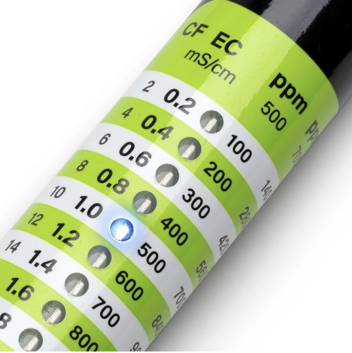 - 0,2–4 mS/cm | 2–40 CF | 140–2800 ppm (0,7 skalė) | 100–2000 ppm (0,5 skalė)