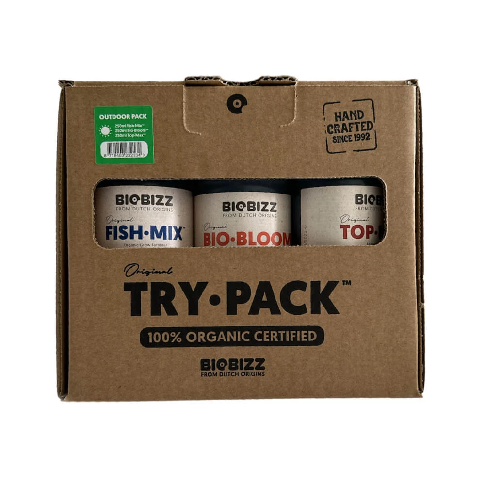 „BioBizz Proovipakett Välitingimusteks“ – kolmest orgaanilisest väetisest koosnev komplekt, mõeldud „välitingimustes“ mullas kasvatamiseks.